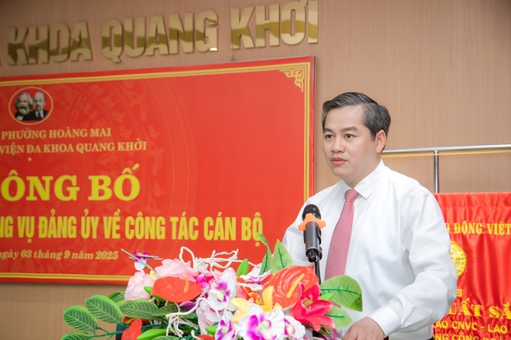 Phát biểu tại buổi lễ, đồng chí Nguyễn Hữu An – Bí thư Đảng ủy phường Hoàng Mai nhấn mạnh, Bệnh viện Đa khoa Quang Khởi là một trong những cơ sở y tế tư nhân tiêu biểu, đã có nhiều đóng góp quan trọng trong sự nghiệp chăm sóc sức khỏe nhân dân và nâng cao chất lượng cuộc sống cộng đồng. Đồng chí khẳng định, Đảng ủy Bệnh viện luôn phát huy vai trò hạt nhân chính trị, là trung tâm đoàn kết, lãnh đạo toàn diện các hoạt động; đồng thời định hướng vững chắc về nghị quyết, chủ trương, tư tưởng, đạo đức và lối sống. Công tác xây dựng, củng cố tổ chức Đảng, phát triển đảng viên, đặc biệt là đội ngũ y bác sĩ trẻ luôn được quan tâm, góp phần nâng cao chất lượng nguồn nhân lực và uy tín của Bệnh viện trong xã hội.
