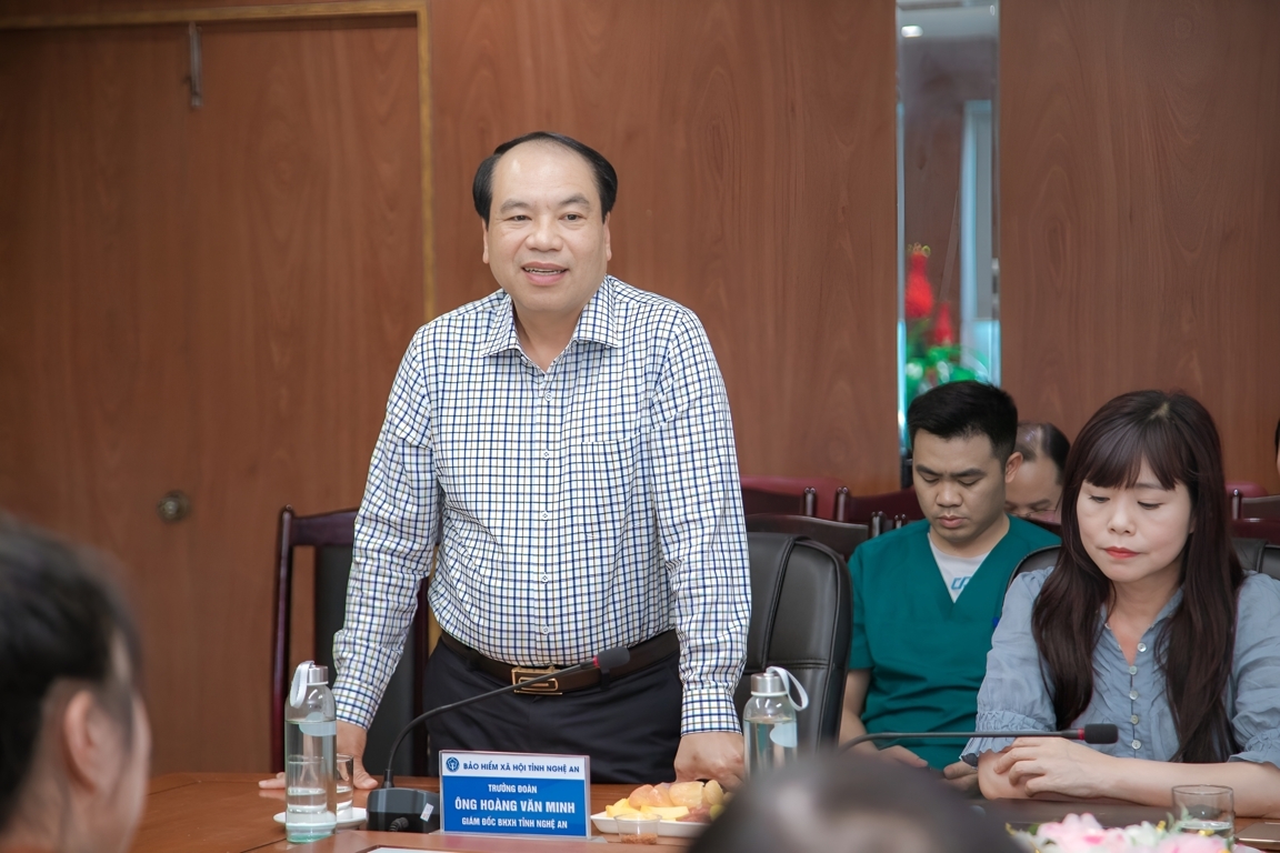 Ông Hoàng Văn Minh - Giám đốc BHXH tỉnh Nghệ An phát biểu tại buổi làm việc.