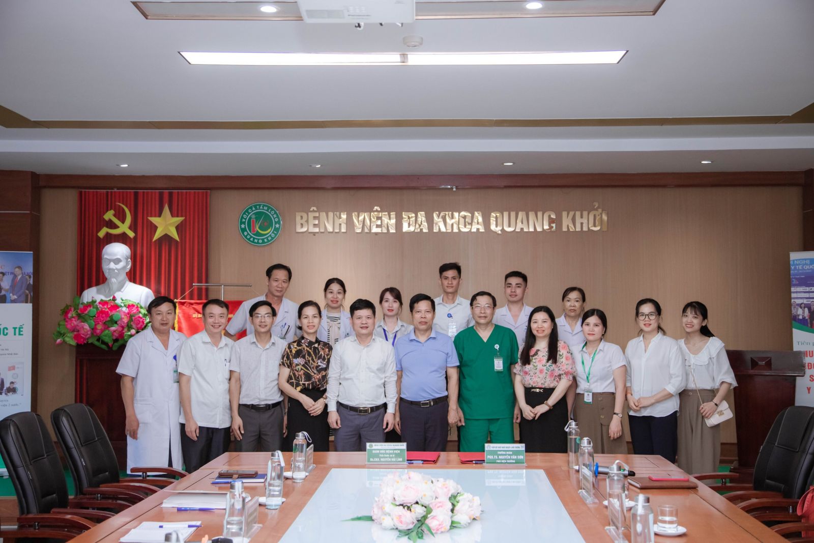 Sáng 25/7/2023, trong khuôn khổ chuyến thăm và làm việc của đoàn công tác Viện Sức khỏe nghề nghiệp & Môi trường - Bộ Y tế với Bệnh viện Đa khoa Quang Khởi, tại hội trường bệnh viện, hai bên đã cùng nhau thảo luận, thống nhất và đi đến ký kết Biên bản ghi nhớ hợp tác toàn diện trong lĩnh vực chuyên môn, nhằm góp phần nâng cao năng lực hệ thống chăm sóc sức khỏe người lao động và kiểm soát bệnh nghề nghiệp.