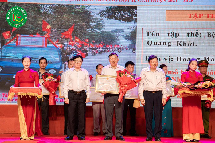 Đại diện Đảng bộ Bệnh viện Đa khoa Quang Khởi (thứ ba, từ trái sang) vinh dự nhận Bằng khen biểu dương của Ban thường vụ Tỉnh uỷ về “Điển hình tiêu biểu trong học tập và làm theo tư tưởng, đạo đức, phong cách Hồ Chí Minh” đợt I, giai đoạn năm 2021 – 2025