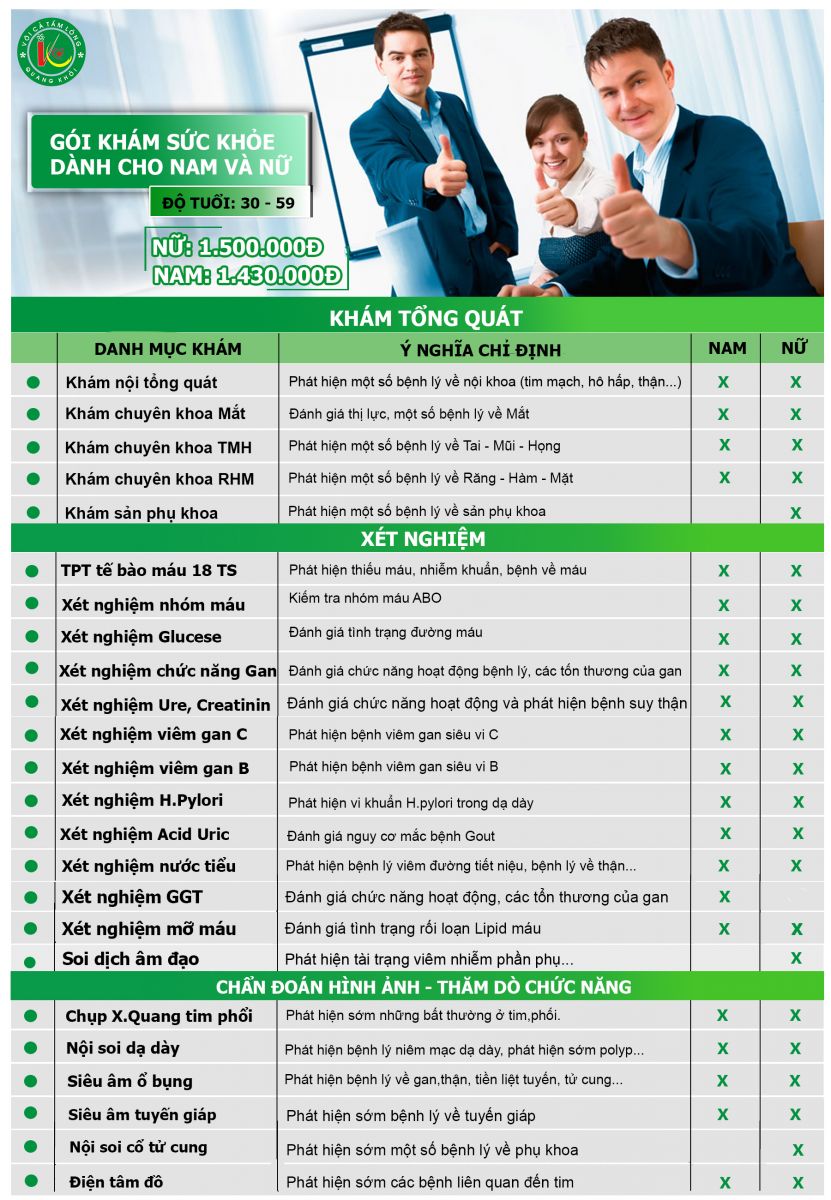 GÓI KHÁM SỨC KHỎE TỔNG QUÁT CƠ BẢN ( Độ tuổi 30-59)